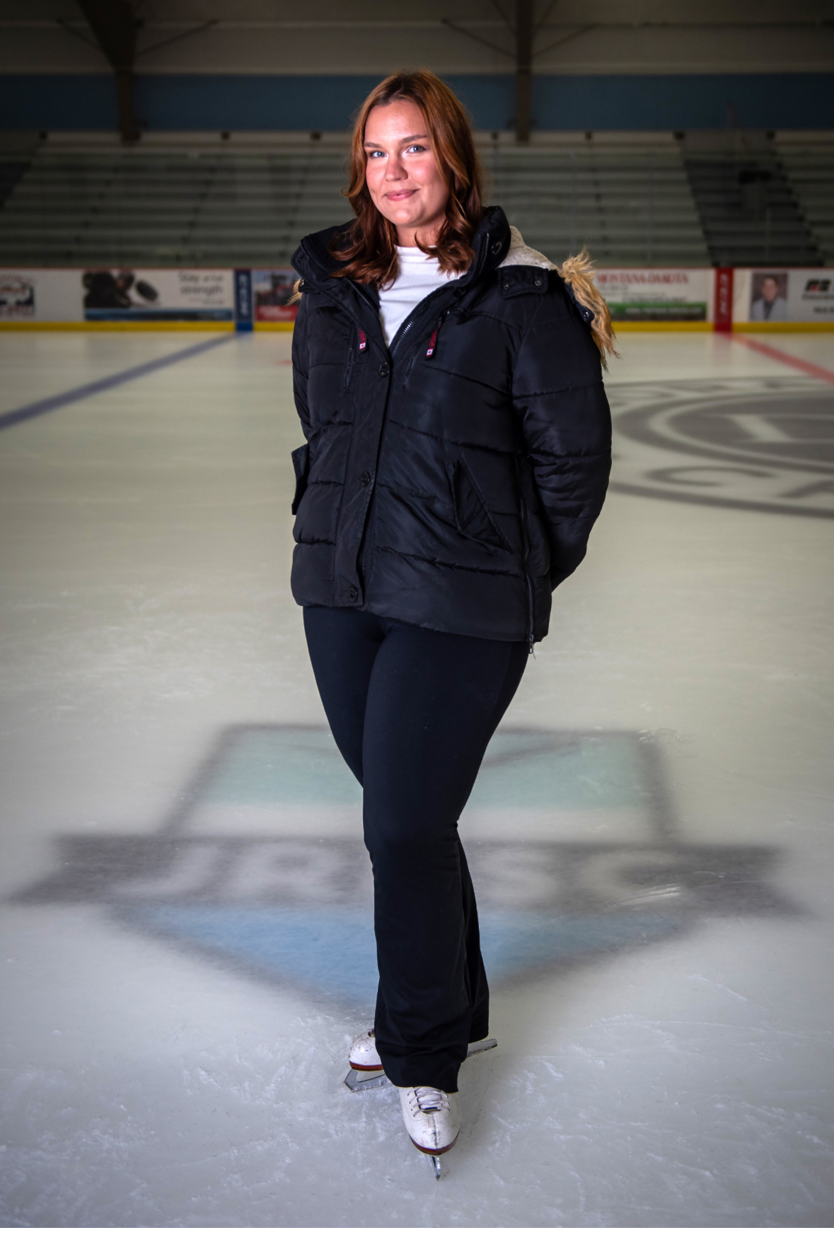 She has been coaching with the Jamestown Regional Figure Skating Club for the past three years and finds great joy in working with young skaters—especially in building relationships and watching them grow both on and off the ice.